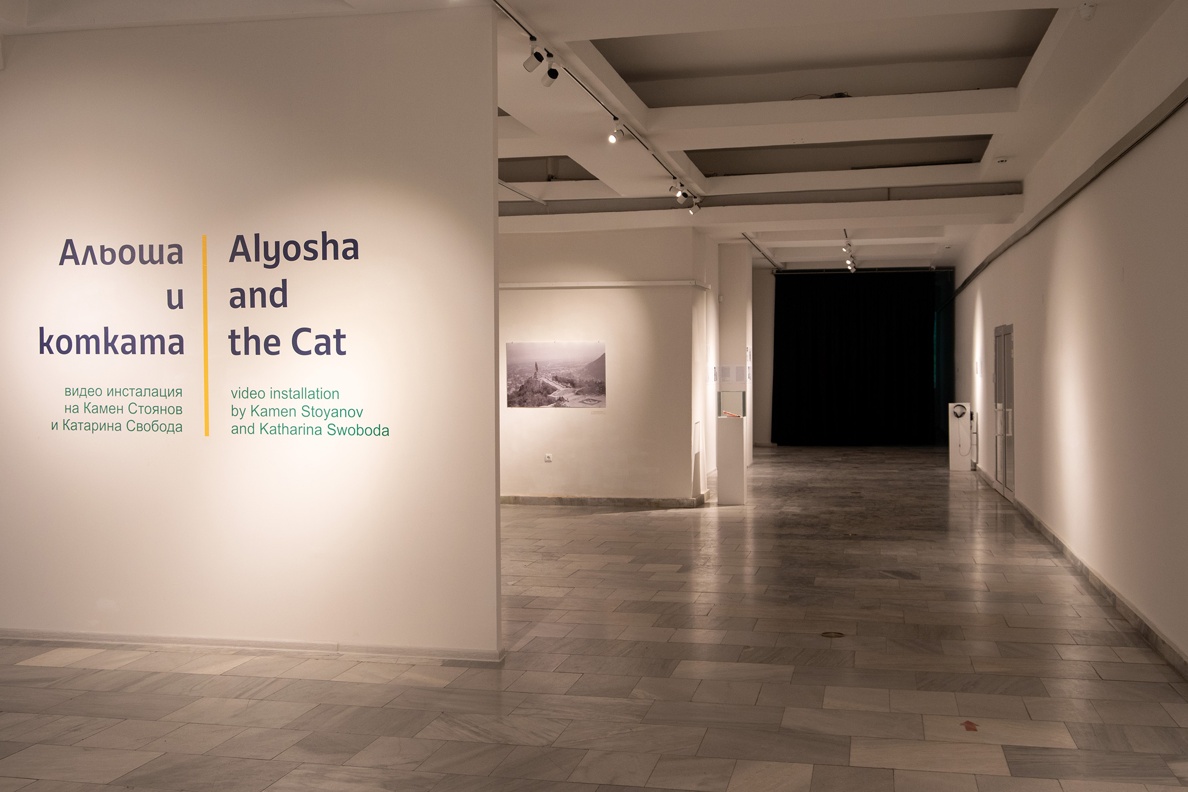 Две противоположни гледни точки към паметника са залегнали и в идеята на “Альоша и котката”. Самата инсталация се състои от архивни фотографии, разпечатки от книги и късометражен филм за една необичайна среща пред паметника на Альоша на хълма Бунарджика. Там се сблъскват две песни и две гледни точки. Вместо документална, Камен Стоянов нарича инсталацията демонументална.